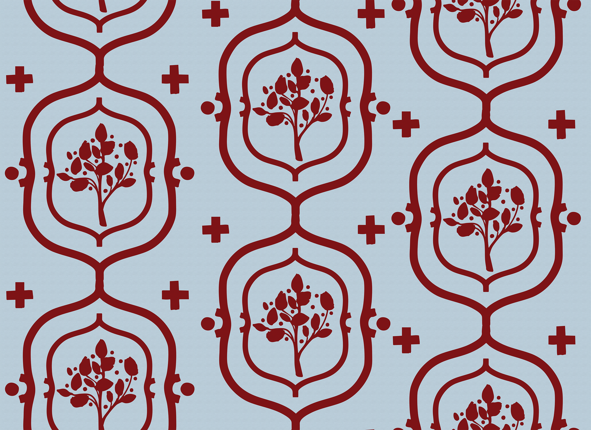 Doublin Red Blue is printed on two options of wallpaper: